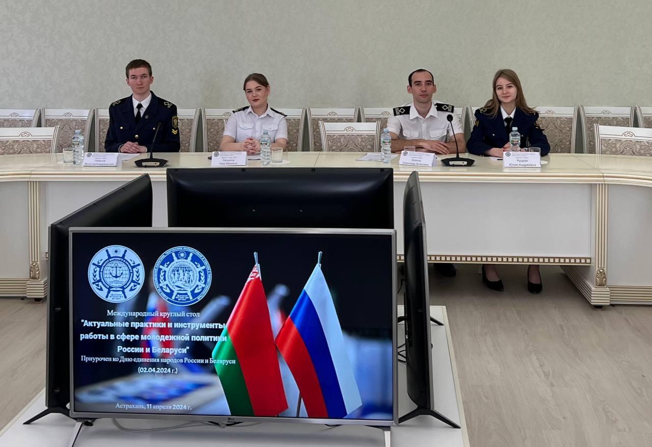 В Астрахани на площадке Каспийского института морского и речного транспорта имени генерал-адмирала Ф.М. Апраксина в формате видео-конференц-связи состоялся международный круглый стол на тему: «Актуальные практики и инструменты работы в сфере молодежной политики России и Беларуси». Представители органов власти, молодёжных организаций и объединений из Санкт-Петербурга, Астраханской, Воронежской, Оренбургской, Самарской областей Российской Федерации и Республики Беларусь подробно рассказали о реализуемых проектах и коснулись перспектив сотрудничества.